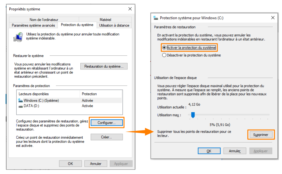 - Supprimez les anciens points de restauration, puis créez-en un nouveau propre.