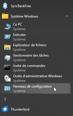 - Sélectionnez « Panneau de configuration » dans le dossier « système Windows ».