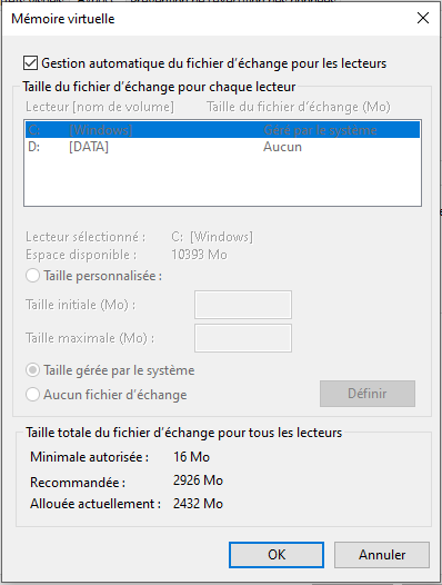 🧮 Contrôler le fichier d’échange (mémoire virtuelle)